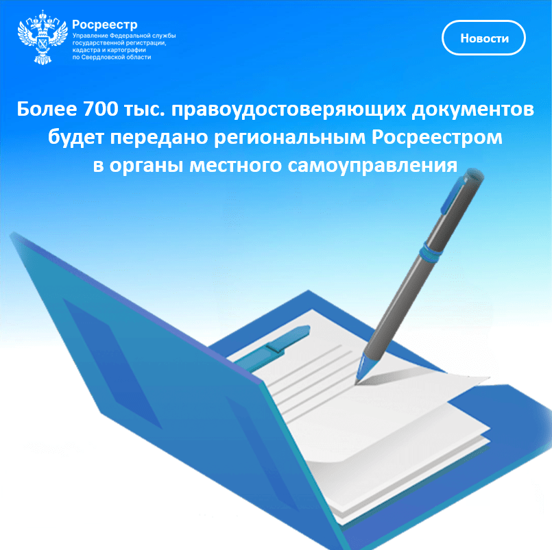 Более 700 тыс. правоудостоверяющих документов будет передано региональным Росреестром в органы местного самоуправления