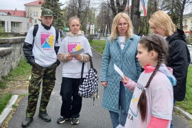 Библиотекари Гайдаровки, волонтёры и представители четырех самых читающих семей бегут по двум маршрутам и задают лесничанам вопросы по темам акции. Каждому, кто дает правильный ответ, в награду вручетсч книга.