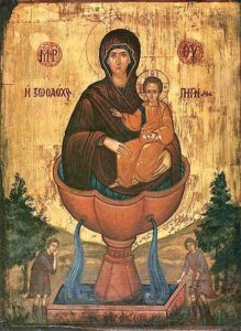 В пятницу Светлой седмицы празднуется день иконы Божией Матери «Живоносный Источник». Появление этой иконы связано с чудесным событием исцеления Богоматерью слепца.