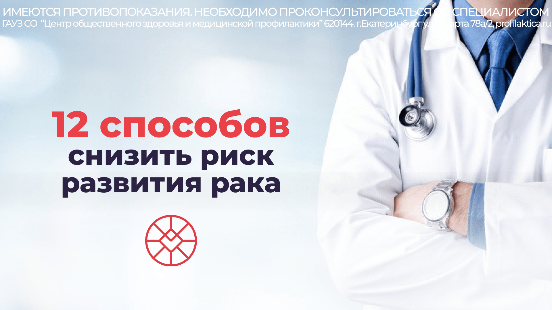 Откажитесь от курения. Не употребляйте никаких видов табачной продукции. Сделайте свой дом и рабочее место свободными от табачного дыма. Избегайте рисков в отношениях с противоположным полом. Инфекции, передаваемые половым путем, в том числе повышают риск развития рака. Примите меры для поддержания нормальной массы тела. Будьте физически активными в повседневной жизни. Соблюдайте здоровый рацион питания Ограничьте или полностью откажитесь от потребления алкогольных напитков. Избегайте чрезмерного воздействия солнечных лучей. На рабочем месте защищайте себя от воздействия веществ, вызывающих развитие онкологии, следуя правилам по охране и гигиене труда. В случае высокого уровня природного облучения радоном в жилом помещении примите меры по его снижению. Для женщин: кормите ребенка грудью; ограничьте гормонозаместительную терапию. Позаботьтесь о вакцинации детей. Пройдите диспансеризацию. Сделать это можно в поликлинике по месту жительства в любой рабочий день с 9.00 до 20.00 (в субботу до 16.00). Диспансеризация проводится для всех взрослых граждан с 18 лет. До 39 лет — один раз в 3 года, начиная с 40 лет — ежегодно.Последние новости