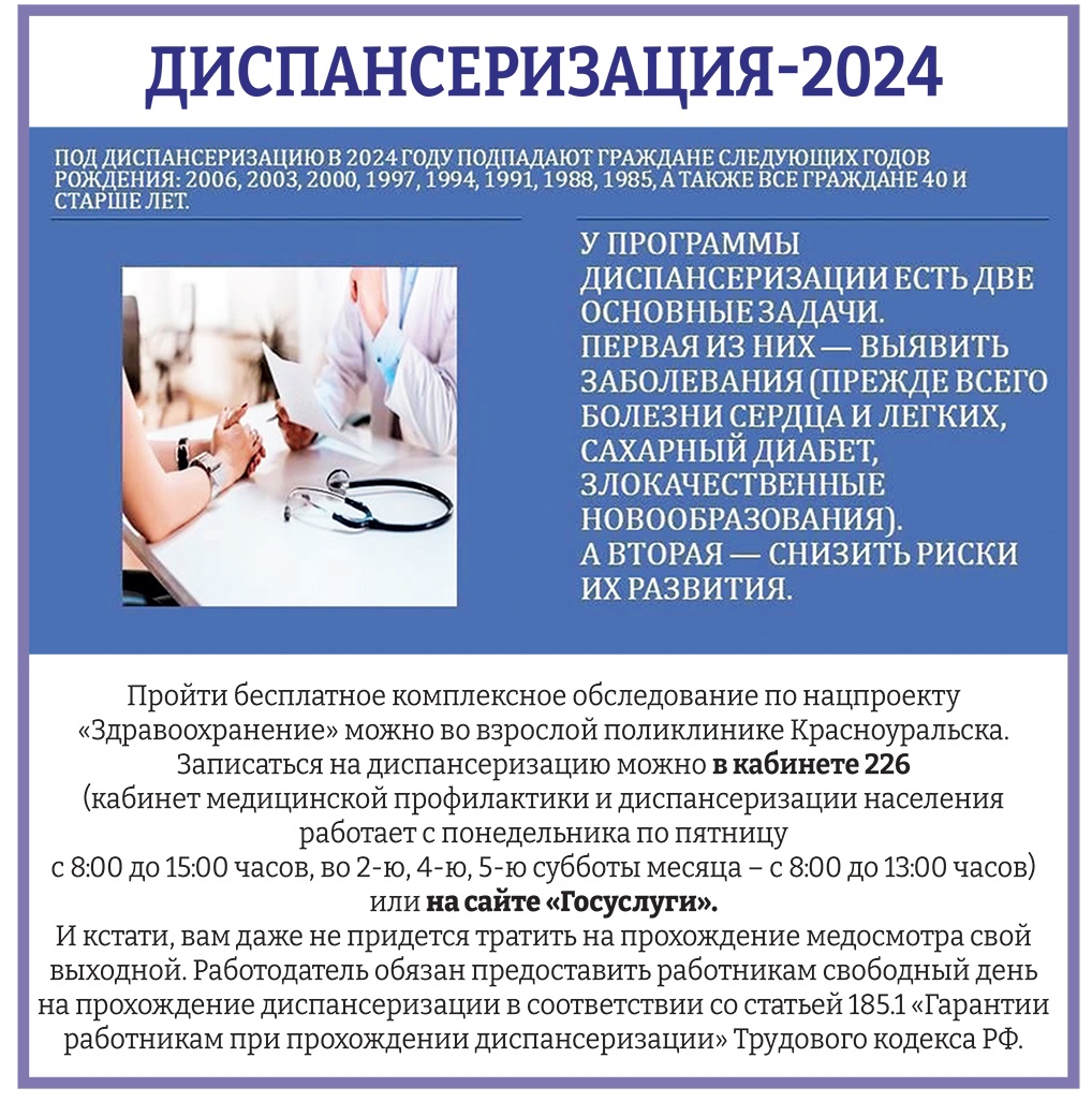 Гораздо сложнее (в силу разных причин) привлечь к тем же диспансерным обследованиям пенсионеров и другое неорганизованное население. Заботиться о своем здоровье, чтобы сохранить качество жизни на долгие годы, – этому нам всем предстоит учиться. И если будем стараться, то, возможно, когда-нибудь привьем эту привычку, что называется, с младых ногтей.